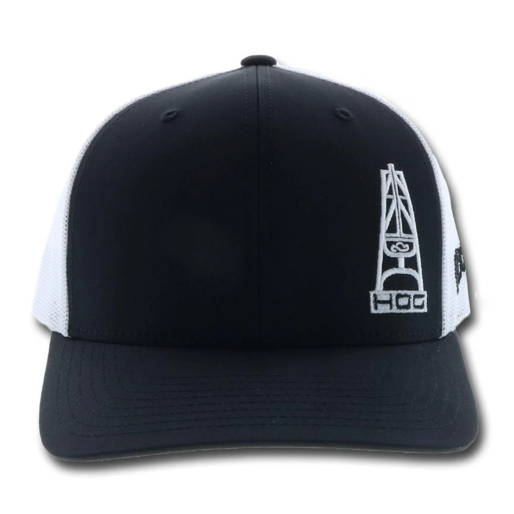 - Black w/ white mesh, white embroidered logo, black side Hooey logo