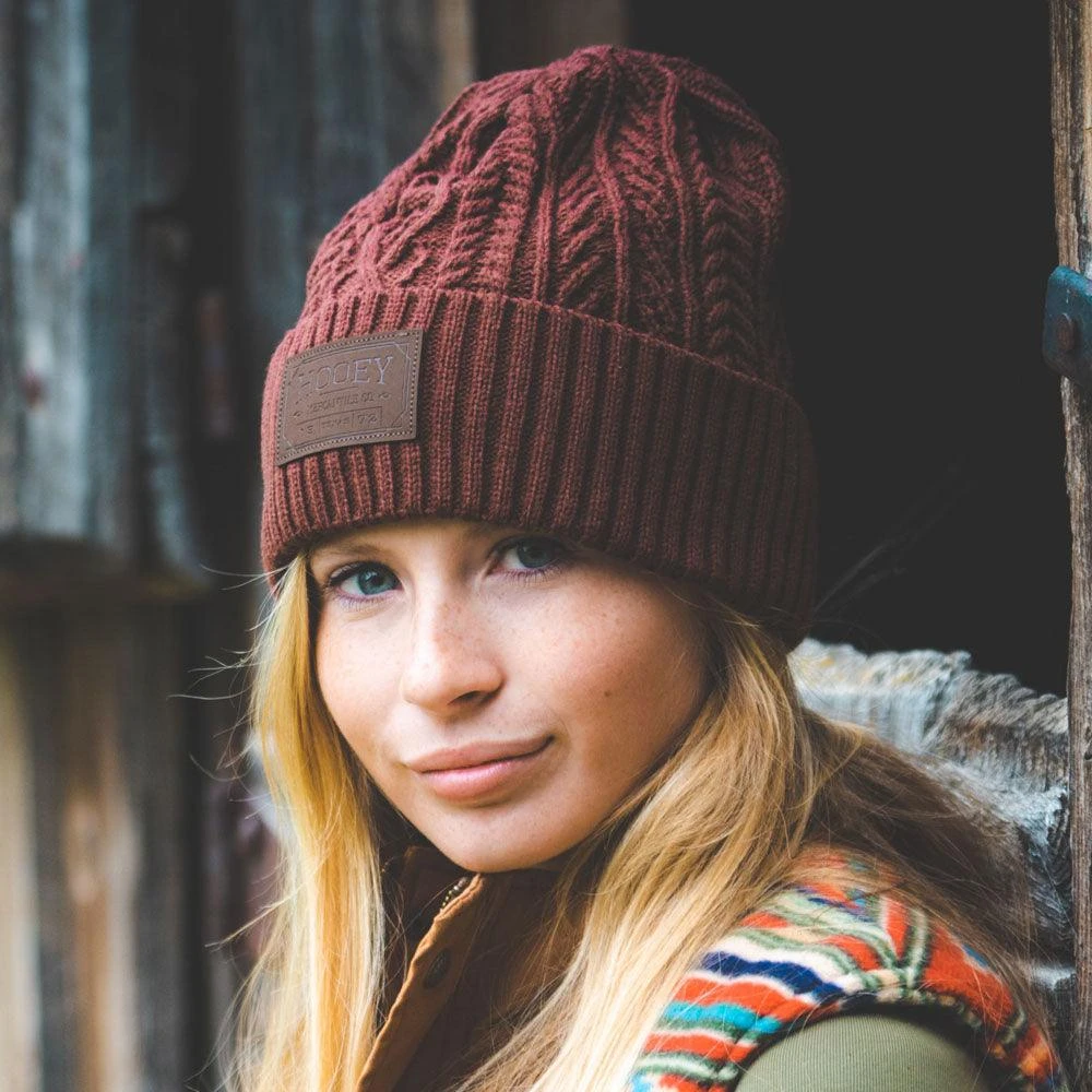 HOOey "Ladies Beanie" Maroon W/ Leather Patch -Hooey Brands red ce8f6db4 b8c2 4372 b0c2 6b1fe27ccacc