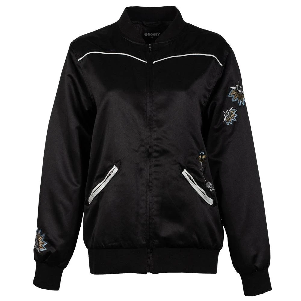 "Hooey Ladies Bomber Jacket" Black W/Floral Accents -Hooey Brands HJ107BK B