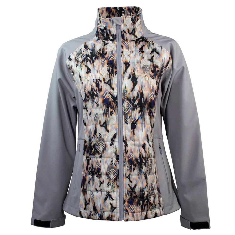 HOOey “Ladies Soft Shell Jacket” Grey W/Cream/Black Aztec Pattern