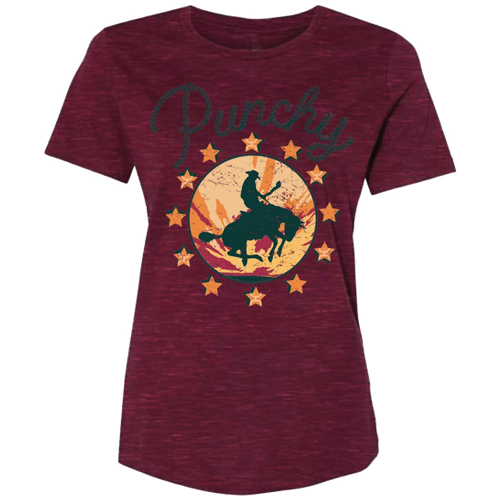 - Cranberry T-shirt with Orange and red Punchy Logo