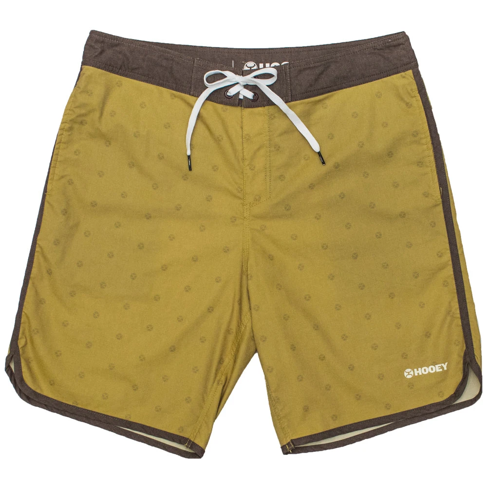 The Shaka Tan Board Shorts are crafted for comfort. These classic board shorts feature a lightweight, two-way stretch fabric with a detailed brown waistband . Made with quick-drying material and enhanced flexibility.