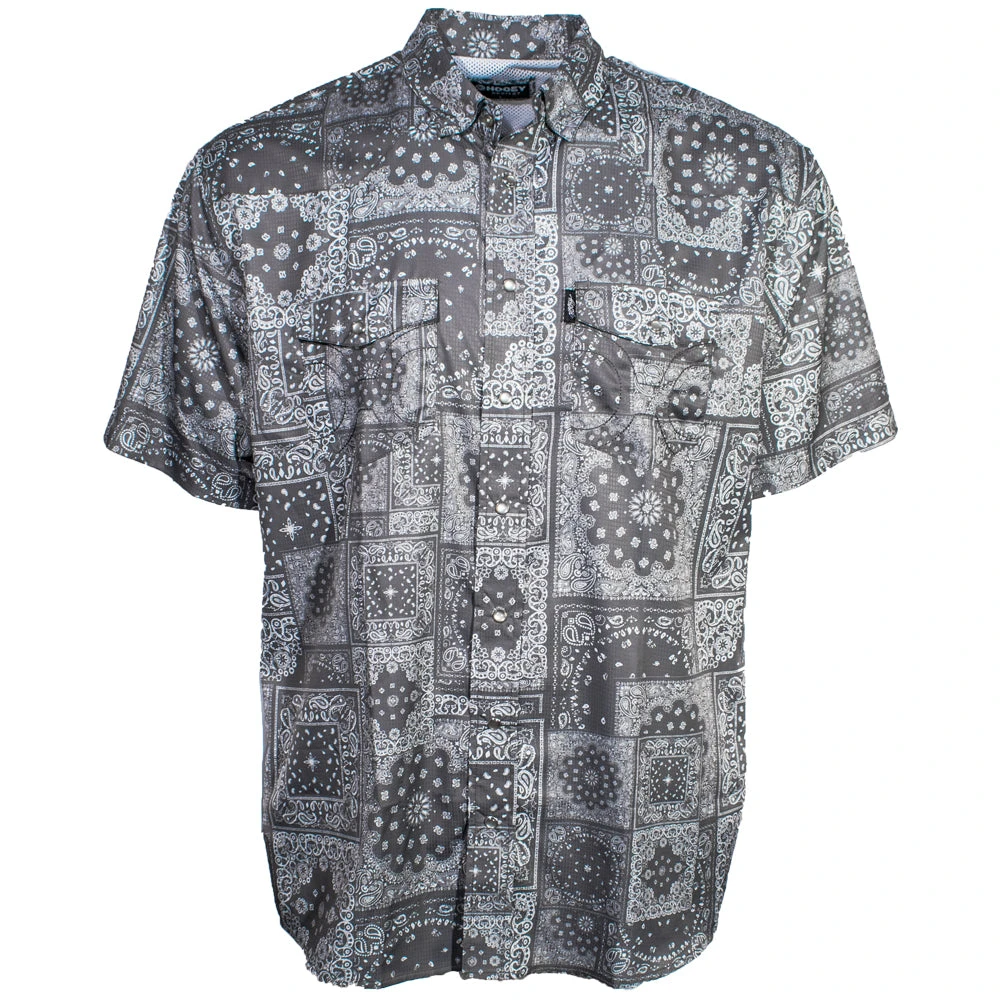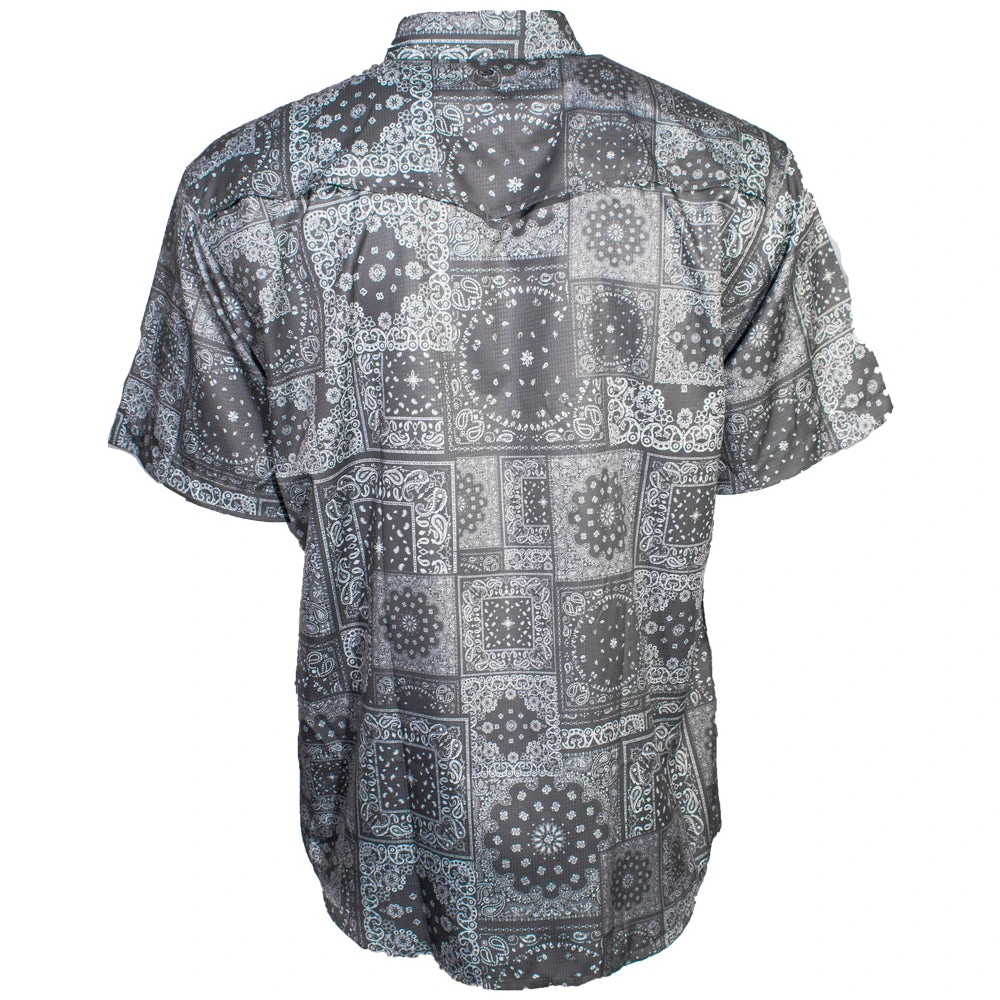 HOOey “Sol” Charcoal Bandana Pattern Short Sleeve Pearl Snap Shirt
