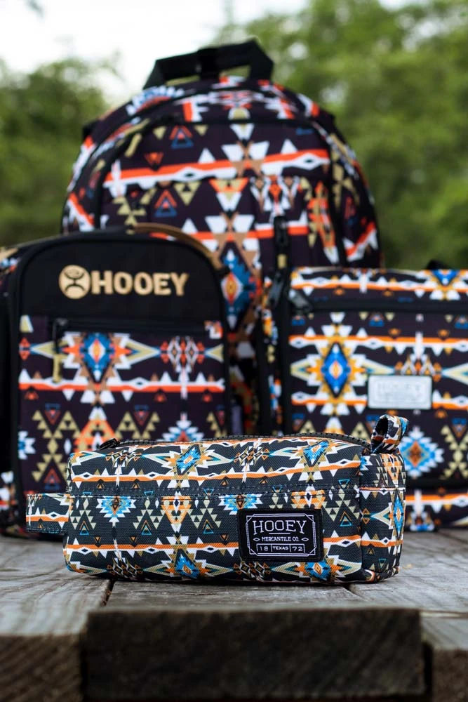 Hooey whatever case goes above and beyond your typical pencil case by offering a durable nylon fabric detailed with brown & tan Aztec pattern, as well as custom inside liner and a reinforced metal zipper. From tech accessories, to beauty supplies, the whatever case makes for the perfect travel accessory.
