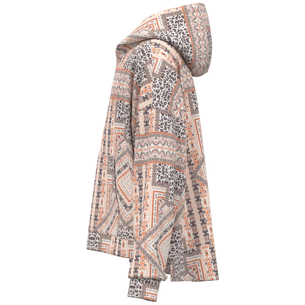This roomy hoody from Youth features a loose, slouchy fit, kangaroo pocket, hidden phone pocket, dropped shoulders, and non-restrictive vented hem for unrestricted comfort. Constructed with a 3-piece hood, it also offers easy layering for a cozy and roomy fit in elegant pink and black multi-pattern.